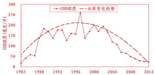 圖三?1983年-2012年全省COD、氨氮平均濃度變化趨勢(shì)圖